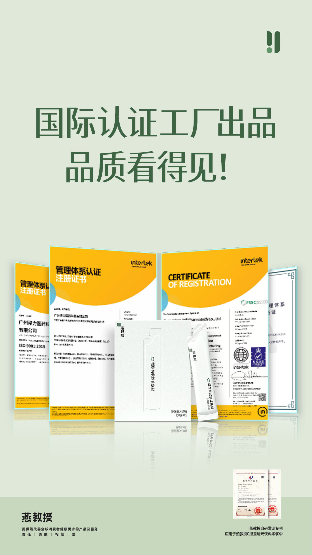 荣誉的背后是持续的研发投入与技术创新。燕教授自创立以来,始终以"提供能改善全球消费者健康需求的产品及服务"为使命,深耕健康领域多年。0担益清元依托两大自主研发专利技术,通过定向供养肠道益生菌、精准激活菌群活性,实现"排浊+养元"的双重功效;采用低温瞬提技术,完整保留原料活性与营养成分。